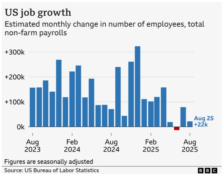 文章说,近期美国公布的8月就业报告显示,美国经济仅新增2.2万个就业岗位,招聘活动几近停滞,其中受特朗普关税影响的制造业部门领跌。