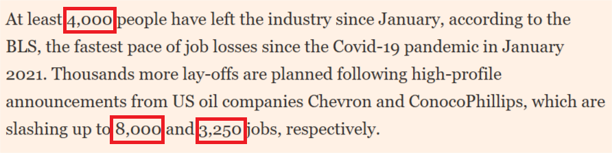 文章采访的一些石油企业表示,“企业确实在为经济衰退做准备”,这就是裁员的原因。“眼下情况相当糟糕,而据预测,明年的情况会更糟。”